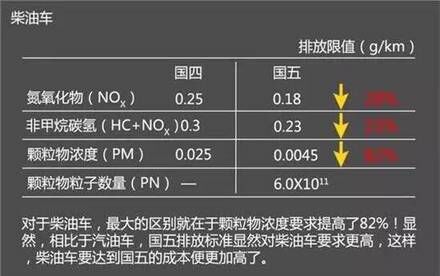 它全稱為國家第五階段機動車污染物排放標(biāo)準(zhǔn),簡稱“國五標(biāo)準(zhǔn)”。其排放控制水平相當(dāng)于歐洲第5階段排放標(biāo)準(zhǔn),不過在2013年歐洲就已經(jīng)開始實施歐六標(biāo)準(zhǔn)。國五標(biāo)準(zhǔn)適用最大總質(zhì)量小于3.5噸的汽車,國五與國四相比,輕型車氮氧化物(NOx)可降低25%,重型車可降低43%,排放標(biāo)準(zhǔn)更加嚴(yán)格。