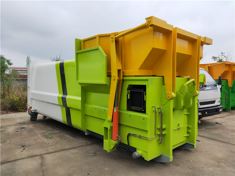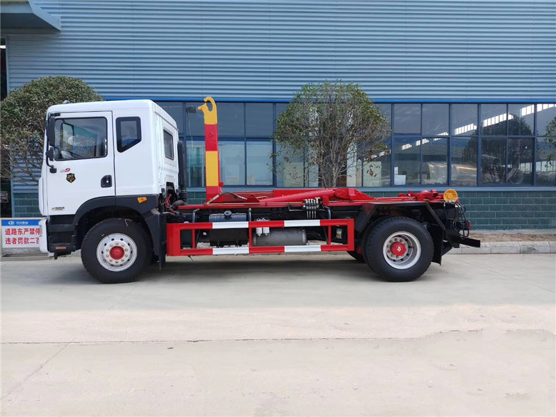 勾臂垃圾車【車廂可卸式垃圾車】車體和垃圾箱可完全分離,由液壓系統(tǒng)來完成收箱/放箱,在平日里可將車載垃圾箱放置到各個垃圾收集點(diǎn),待垃圾收集滿后,該車可直接開赴收集點(diǎn),通過液壓系統(tǒng)的操控,可將垃圾車后座上加裝的勾臂放下,掛住站內(nèi)箱體前端的連接點(diǎn),將垃圾箱拉**車體的后座上,此時即可開動車輛,將垃圾運(yùn)送垃圾處理站內(nèi),進(jìn)行自卸式傾倒,優(yōu)點(diǎn)就是可一車配多斗,一輛車就可以維持?jǐn)?shù)個垃圾收集站的運(yùn)轉(zhuǎn),效率高,且箱體為密封式設(shè)計,不會造成二次污染。