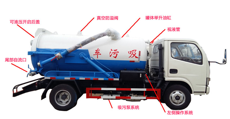 吸污車專用部分由取力器、傳動(dòng)軸、真空吸污泵、壓力罐體、液壓部分,管網(wǎng)系統(tǒng)、真空壓力表、視糞窗、洗手裝置等組成,隨車配置大功率真空吸污泵(可選裝水環(huán)式真空泵)和優(yōu)質(zhì)液壓系統(tǒng),罐體封頭一次壓鑄成型、雙頂自卸。