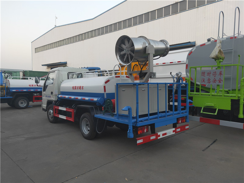 灑水車工作主要由發(fā)動機帶動變速箱,變速箱上安裝的取力器帶動灑水車水泵產(chǎn)生動力,將罐體內(nèi)部的水通過管路噴灑出去,水泵可自吸自排?筛鶕(jù)用戶需求選配抑塵霧炮。